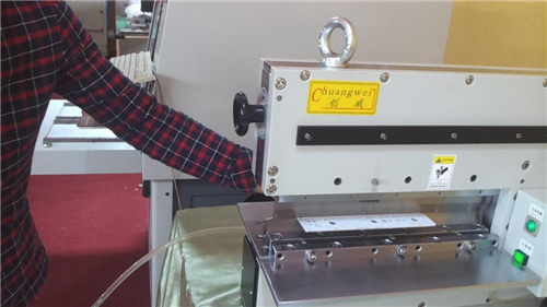 6、PC板推到鍘刀可切割范圍內(nèi)并踩下踏板,用手輕輕扶住PC板直到整個(gè)程序完成。