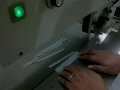 4,上刀片高度調(diào)整:根據(jù)所要分的PCB板的厚度不同對(duì)其上刀高度進(jìn)行調(diào)節(jié),直到調(diào)整至最佳結(jié)果,在下刀上放置一厚度為0.1MM的紙張,撥動(dòng)上刀座滑動(dòng)時(shí),紙上有清晰平直均勻的劃痕為最佳;電路板沿導(dǎo)板送入機(jī)器內(nèi),能否干凈利落的被刀片分開,取決于上刀片和下刀片的間距是否合適來決定的,所以分板前要將刀片高度調(diào)好,試切完畢后沒有問題后,擰緊調(diào)整旋鈕固定螺絲.用雙手將待分PCB的V-CUT槽卡在上刀行程之內(nèi)的下刀刀刃上(不可歪斜),用腳踩腳踏開關(guān)進(jìn)行分板作業(yè)。