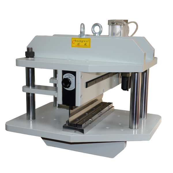 (1),鍘刀式LED鋁基板分板機,CWVC-2L(此種型號鍘刀式LED鋁基板分板機分板時如剪刀式的工作過程,因些其分板時產生的應力是在此三種中是最小的,甚或忽略不計,其單次分板只能切330mm長以內的板。切割時無震動,直線分布切割應力,可避免傷害脆弱零件,可分敏感極高的SMD零件或超薄PCB板,當然可根據客戶要求訂作200-450mm的鍘刀片。特別適用于分割各種要求精密的PCB拼板。)